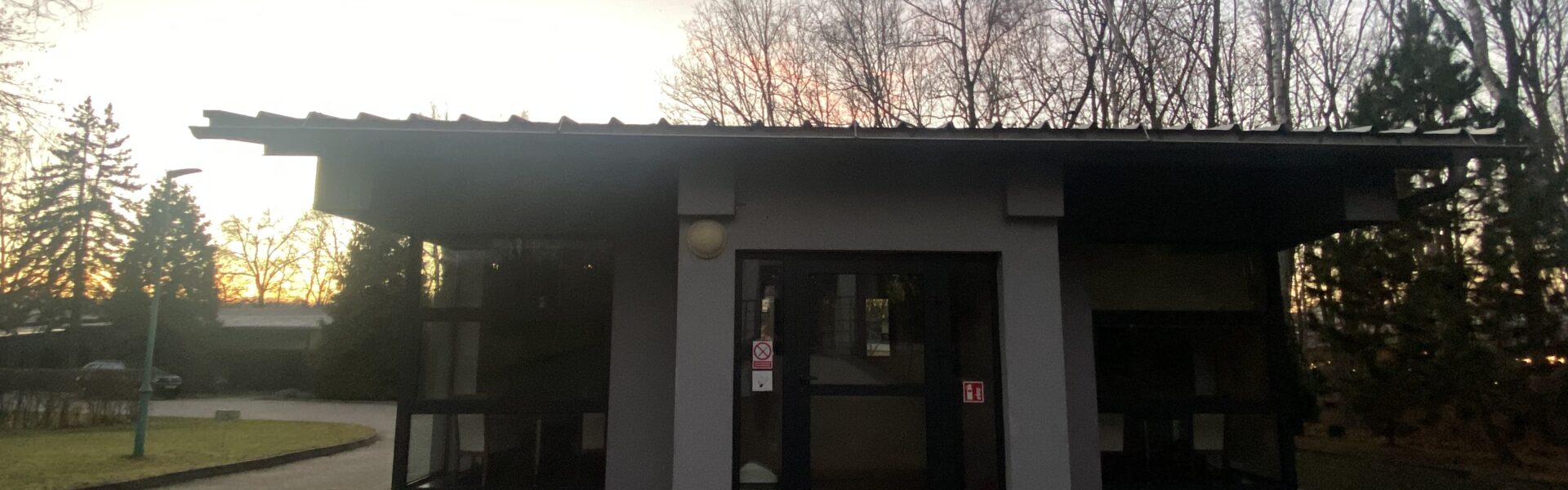 Budynek recepcji dostosowany do osoby na wózku inwalidzkim, delikatny podjazd do budynku recepcji. Dom kampingowy z udogodnieniami dla osoby niepełnosprawnej posiada podjazd.