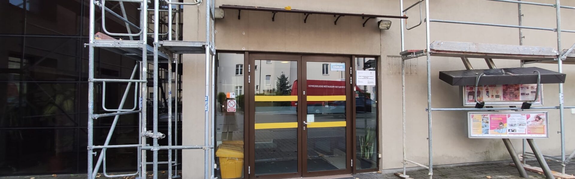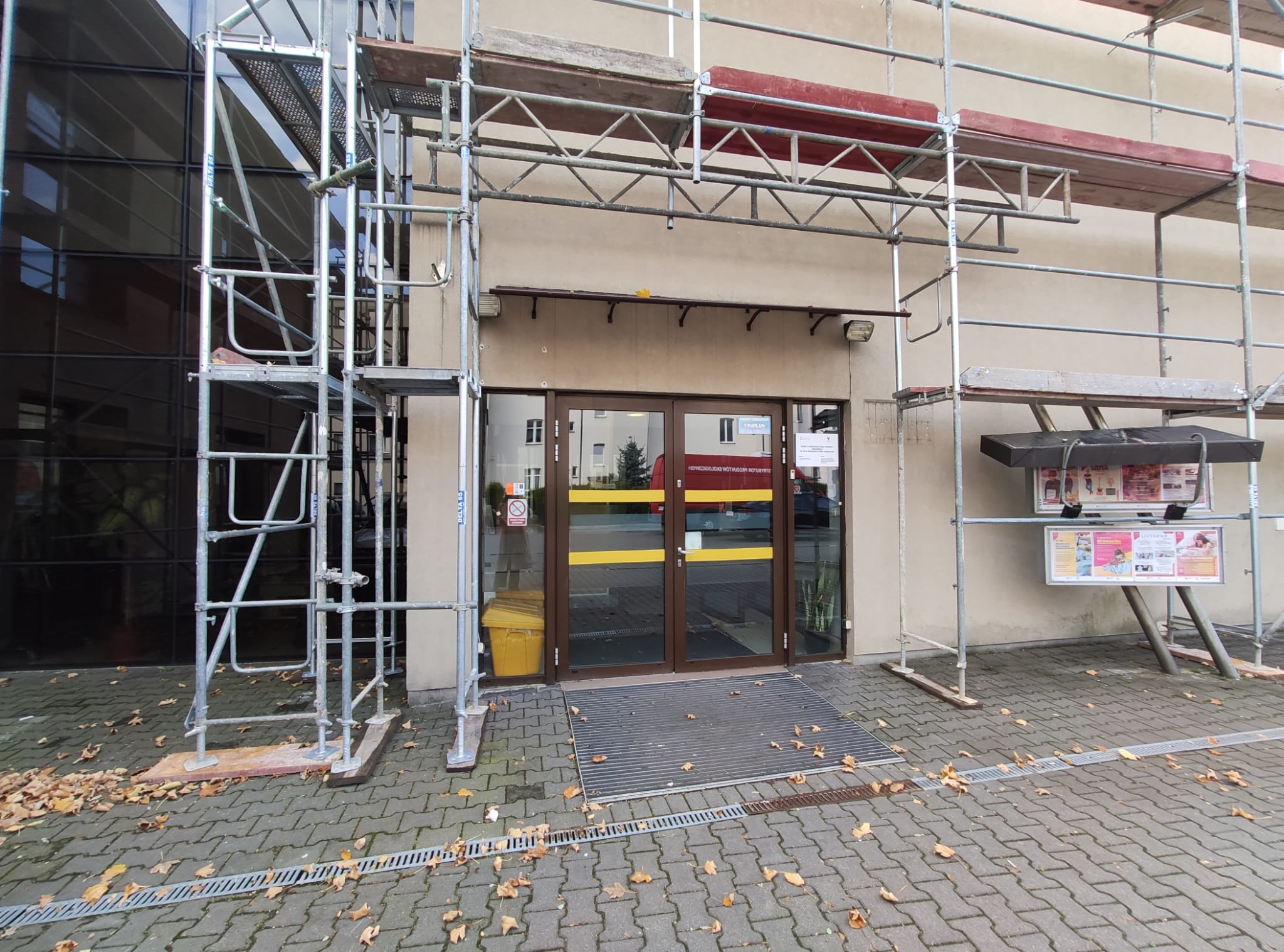 Wejście do budynku znajduje się na poziomie chodnika – bez schodów ani progów. Drzwi oznaczono żółtą taśmą. Za nimi znajduje się przedsionek oraz kolejne drzwi prowadzące do wnętrza obiektu. W razie trudności z przejściem, obsługa jest gotowa udzielić pomocy, m.in. przytrzymać drzwi lub ułatwić dostęp.
