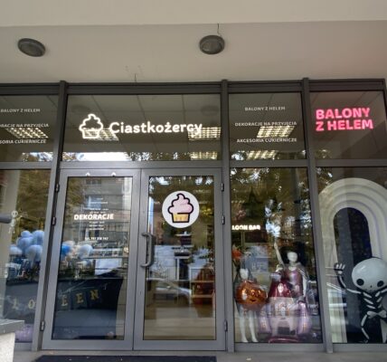 Wejście po trzech schodach (wokół budynku) lub od tyłu budynku (bez schodów). Drzwi szerokie, otwierają się automatycznie.Wnętrze