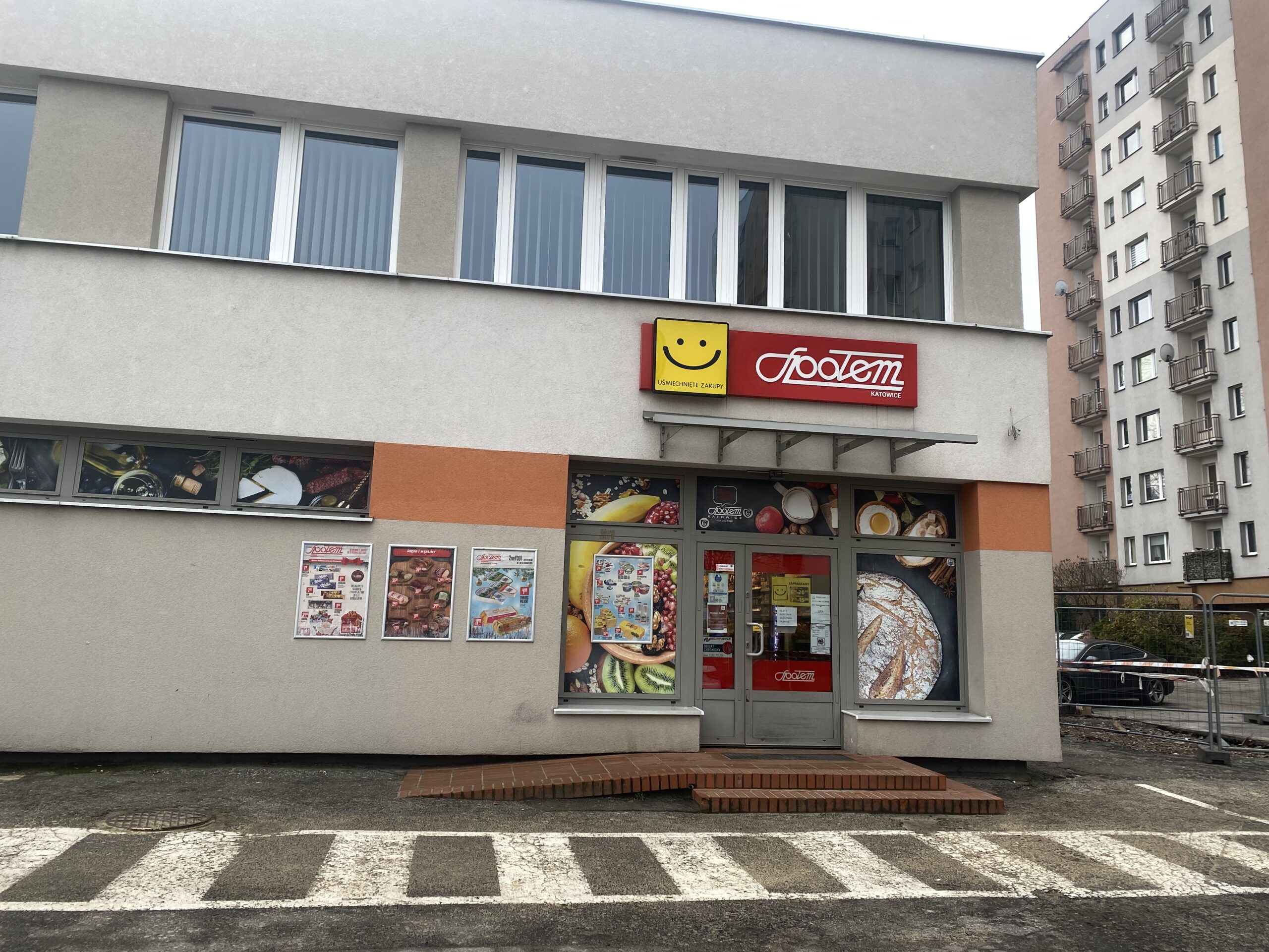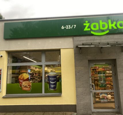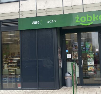 Obrotowa bramka - możliwość przejścia obok kasy. Wnętrze płaskie, obszerne. Alejki sklepowe w różnych szerokościach, przeważnie dostępne dla osoby na wózku.
