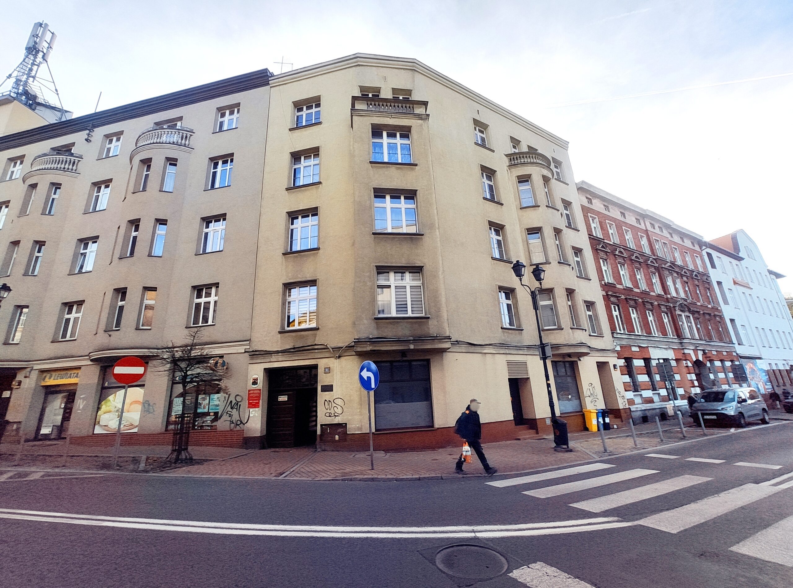 Obiekt znajduje się w pobliżu głównego dworca kolejowego. Przed dworcem dostępne są miejsca parkingowe, a wzdłuż ulicy – parkingi równoległe. W najbliższej okolicy brak wyznaczonych miejsc postojowych przeznaczonych dla osób z niepełnosprawnościami. Budynek usytuowany jest na rogu, a przed nim znajduje się chodnik wyłożony kostką brukową. Lokal sąsiaduje ze sklepem spożywczym.
